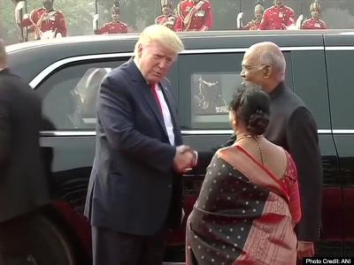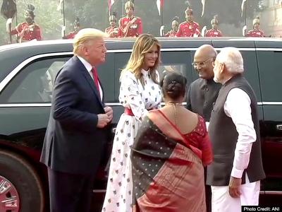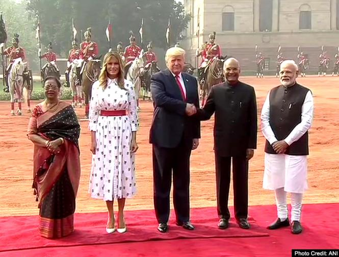 25 फरवरी की सुबह राष्ट्रपति भवन के प्रांगण में डोनाल्ड ट्रंप और मेलानिया ट्रंप का औपचारिक स्वागत किया गया।