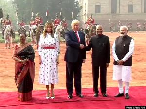 1 / 7अमेरिकी राष्ट्रपति डोनाल्ड ट्रंप और मेलानिया ट्रंप का आज भारत में दूसरा दिन है।2 / 725 फरवरी की सुबह राष्ट्रपति भवन के प्रांगण में डोनाल्ड ट्रंप और मेलानिया ट्रंप का औपचारिक स्वागत किया गया। 3 / 7डोनाल्ड ट्रंप से राष्ट्रपति रामनाथ कोविंद ने हाथ मिला कर उनका वेलकम किया।4 / 7उनके साथ पीएम नरेंद्र मोदी, रक्षा मंत्री राजनाथ सिंह भी मौजूद हैं।5 / 7अमेरिकी राष्ट्रपति डोनाल्ड ट्रंप को गार्ड ऑफ ऑनर दिया गया।6 / 7भारतीय सेनाओं ने भी राष्ट्रपति ट्रंप का स्वागत किया।7 / 7राष्ट्रपति भवन के बाद डोनाल्ड ट्रंप राजघाट के लिए रवाना हो गए हैं।