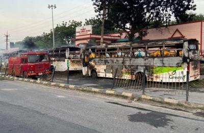 राजस्थान के डूंगरपुर जिले के बिछीवाड़ा थाना क्षेत्र में राष्ट्रीय राजमार्ग आठ पर उग्र प्रदर्शनकारियों ने शुक्रवार को पुलिस दल पर पथराव किया और कुछ बसों को आग के हवाले कर सार्वजनिक संपत्ति को नुकसान पहुंचाया।