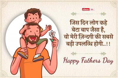 फादर्स डे पूरी दुनिया में हर साल जून के तीसरे रविवार को मनाया जाता है, जो इस साल 19 जून को मनाया जाएगा। इस दिन बच्चे अपने जीवन में पिता के महत्व, उनके आदर और उनके प्रति अपना सम्मान प्रकट करते हैं। आप भी इस एक खास दिन को अपने पिता को सम्मान देने और खुश रहने के लिए इन खास मैसेज, कोट्स और इमेज भेज सकते हैं.