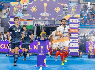 FIH Men's Junior World Cup: पिछले दो बार टीम कांस्य पदक का मुकाबला हारकर चौथे स्थान पर रही थी। भारत के लिये अंकित पाल (49वां), मनमीत सिंह (52वां), शारदानंद तिवारी (57वां) और अनमोल इक्का (58वां) ने गोल दागे। वहीं अजेंटीना के लिये निकोलस रौद्रिगेज (पांचवां) और सैंटियागो फर्नांडिस (44 वां) ने गोल किये।