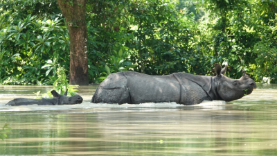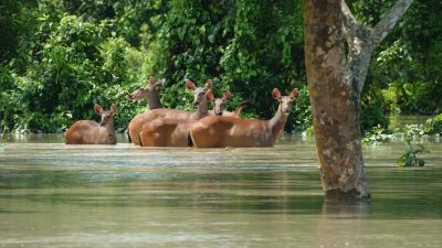 ब्रह्मपुत्र और उसकी सहायक नदियों का उफान मारता पानी काजीरंगा राष्ट्रीय उद्यान में प्रवेश कर गया है, जिससे बाघ और अन्य जानवरों को जान बचाने के लिये मानव आबादी और ऊंचे इलाकों की ओर भागना पड़ा।