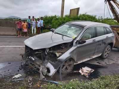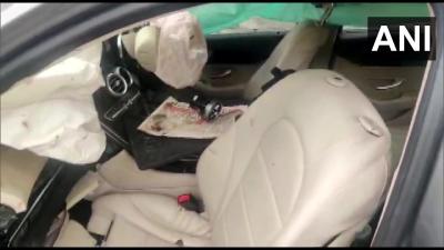 इस हादसे में मिस्त्री के साथ यात्रा कर रहे दो अन्य लोग घायल हुए हैं जिनमें कार चालक भी शामिल है। (फोटो: Twitter/ANI)