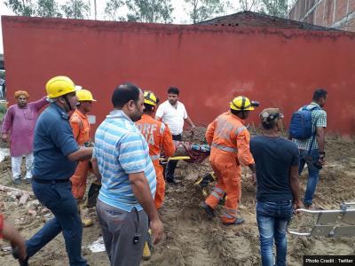 पांच लोगों को सुरक्षित बचा लिया गया है। बाहर निकाली गई गीता नाम की महिला ने बताया कि उनके पति और 8 साल के बच्चे सहित उनका पूरा परिवार अंदर फंसा हुआ है।