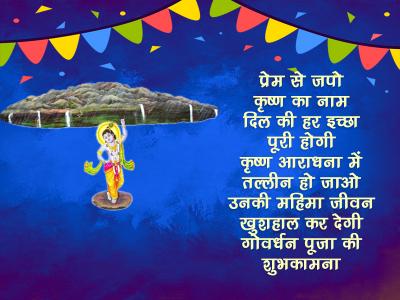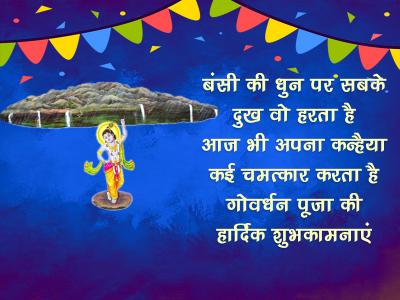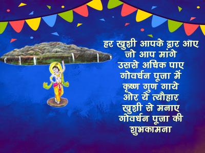 हर ख़ुशी आपके द्वार आए जो आप मांगे उससे अधिक पाए गोवर्धन पूजा में कृष्ण गुण गाये ओर ये त्यौहार ख़ुशी से मनाए गोवर्धन पूजा की शुभकामना