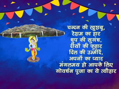 चन्दन की खुशबू, रेशम का हार धुप की सुगंध, दीयों की फुहार दिल की उम्मीदें, अपनों का प्यार मंगलमय हो आपके लिए गोवर्धन पूजा का ये त्यौहार