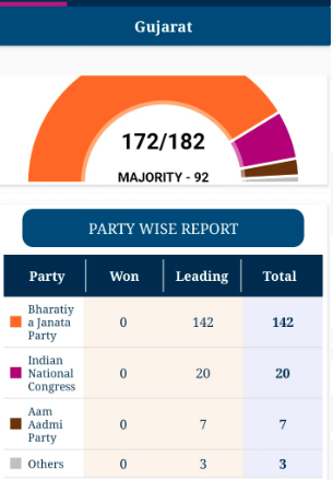 Gujarat Election Results: रुझानों में BJP की आंधी जारी, कांग्रेस और AAP पीछे