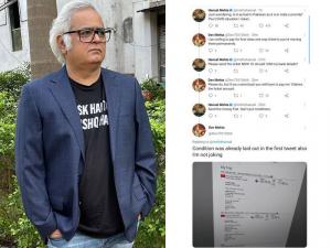 1 / 4फिल्ममेकर हंसल मेहता ने सोशल मीडिया काफी एक्टिव रहते हैं और कई मुद्दों पर अपनी राय देते रहते हैं, हंसल मेहता ने अपने ट्विटर एकाउंट पर पाकिस्तान में कोरोना के हालातों की तुलना भारत से की थी। (फोटो: ट्विटर)2 / 4हंसल मेहता को एक यूजर ने इसके जवाब में लिखा 'मैं फर्स्ट क्लास वन वे टिकट के पैसे देने के लिए तैयार हूं अगर आप वहां हमेशा के लिए चले जाएं'। (फोटो: ट्विटर)3 / 4हंसल मेहता ने यूजर को जवाब देते हुए लिखा 'प्लीज टिकट भेज दीजिए, या फिर मैं अपना बैंक डीटेल शेयर करूं ? इसके बाद यूजर ने कहा- 'प्लीज दीजिए, अगर आप वापस आए तो आपको मुझे टिकट के दाम के 10 गुने रुपए देने होंगे'। (फोटो: ट्विटर)4 / 4इसके आगे यूजर ने हंसल मेहता के लिए मुंबई से दुबई और दुबई से कराची का टिकट बुकिंग का स्क्रीन शोर्ट शेयर किया है। (फोटो: ट्विटर)