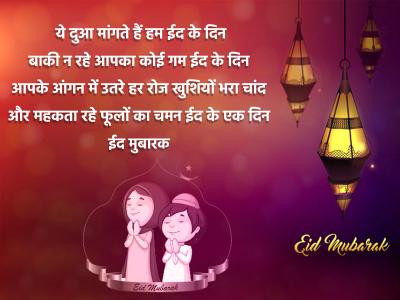 ये दुआ मांगते हैं हम ईद के दिन बाकी न रहे आपका कोई गम ईद के दिन आपके आंगन में उतरे हर रोज खुशियों भरा चांद और महकता रहे फूलों का चमन ईद के एक दिन ईद मुबारक