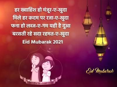 हर ख्वाहिश हो मंजूर-ए-खुदा मिले हर कदम पर रजा-ए-खुदा फना हो लब्ज-ए-गम यही है दुआ बरसती रहे सदा रहमत-ए-खुदा Eid Mubarak 2021