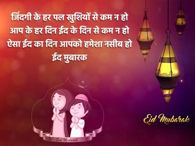 जिंदगी के हर पल खुशियों से कम न हो आप के हर दिन ईद के दिन से कम न हो ऐसा ईद का दिन आपको हमेशा नसीब हो ईद मुबारक