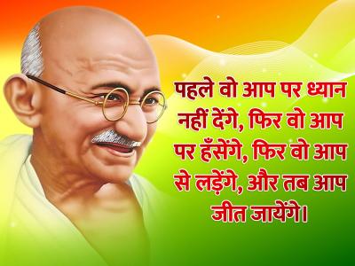 पहले वो आप पर ध्यान नहीं देंगे, फिर वो आप पर हँसेंगे, फिर वो आप से लड़ेंगे, और तब आप जीत जायेंगे।