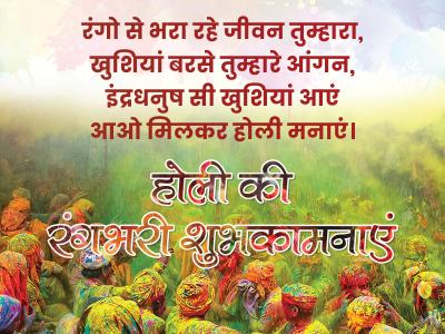 रंगो से भरा रहे जीवन तुम्हारा, खुशियां बरसे तुम्हारे आंगन, इंद्रधनुष सी खुशियां आएं आओ मिलकर होली मनाएं।
