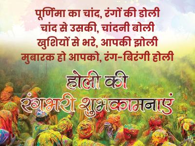 पूर्णिमा का चांद, रंगों की डोली चांद से उसकी, चांदनी बोली खुशियों से भरे, आपकी झोली मुबारक हो आपको, रंग-बिरंगी होली
