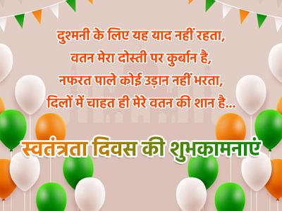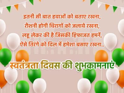 इतनी सी बात हवाओं को बताए रखना, रौशनी होगी चिरागों को जलाये रखना, लहू लेकर की है जिसकी हिफाजत हमनें, ऐसे तिरंगे को दिल में हमेशा बसाए रखना.