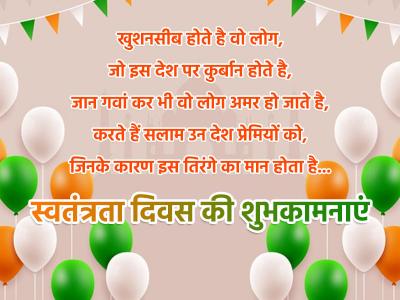 कुछ नशा तिरंगे की आन का है, कुछ नशा मातृभूमि की मान का है, हम लहराएंगे हर जगह इस तिरंगे को, ऐसा नशा ही कुछ हिंदुस्तान की शान का हैं.