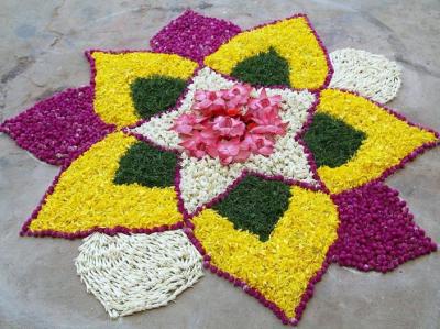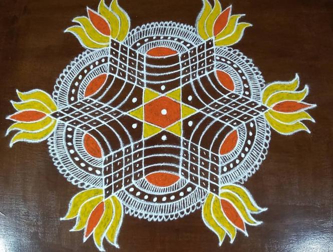 आप चाहें तो फूलों की भी रंगोली बना सकते हैं। उसके चारों तरफ रंगोली को सजा दें।। (फोटो: इंस्टाग्राम)
