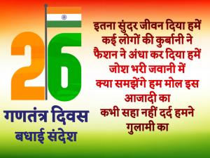 1 / 8इतना सुंदर जीवन दिया हमें कई लोगों की कुर्बानी ने फैशन ने अंधा कर दिया हमें जोश भरी जवानी में क्या समझेंगे हम मोल इस आजादी का कभी सहा नहीं दर्द हमने गुलामी का2 / 8मां तुझे सलाम तू मस्तक पर विराजे यही है मेरी शान तिरंगा मिले कफन में मुझे यही उपहार होगा तेरा हर जीवन तेरे आंचल में खिले यही अरमान होगा मेरा3 / 8सीमा पर लोग मरते हैं वो खुशनसीब अमर हो जाते हैं मेरी बदकिस्मती है ये हम आम जिंदगी जीएं चले जाते हैं4 / 8दिल के तार जुड़ गए हैं उससे बेवफाई ना होगी मुझसे उसकी भक्ति में ही सुकून है ऐ भारत मां क्या तुझे मेरा मस्तक कुबूल है5 / 8खूबसूरती ऐसी है मेरे वतन की शान है दिल में तिरंगे की जिंदगी से इतना प्यार न रह गया भारत मां का दुलार ही जीवन बन गया6 / 8न पाल हिन्दू-मुस्लिम का बैर मेरी मां के प्यार को न बना इतना गैर उसके दिल में सभी समान हैं सब मिलकर रहे इसी में उसकी शान है7 / 8क्या हिन्दू क्या मुस्लिम क्या सिख क्या ईसाई मेरी मां ने कहा था हम सब हैं भाई-भाई8 / 8पैसे की चाह में देश छूट गया ऐ वतन मैं तुझसे दूर हो गया न जानता था मैं इस मिट्टी की खुशबू न समझता था मैं अपनों की आरजू