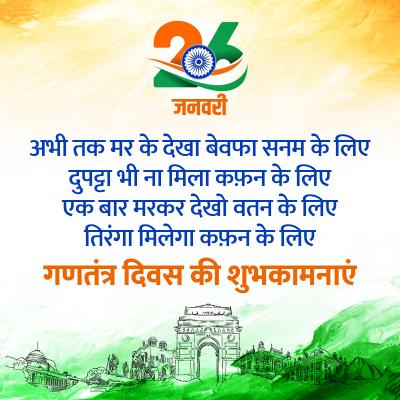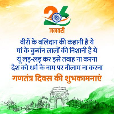 26 जनवरी 2022 को भारत 73वां गणतंत्र दिवस मनाया जाएगा। इस मौके पर आप इन संदेशों और तस्वीरों से मुबारकबाद भेज सकते हैं।