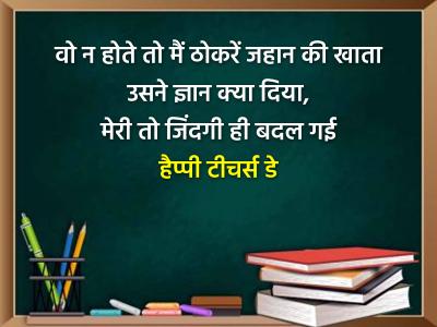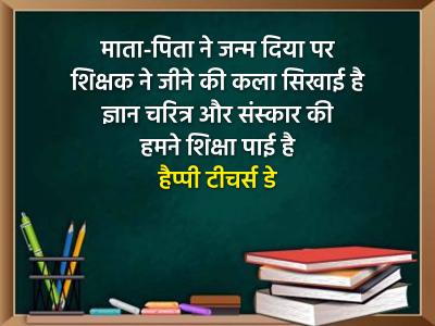 माता-पिता ने जन्म दिया पर शिक्षक ने जीने की कला सिखाई है ज्ञान चरित्र और संस्कार की हमने शिक्षा पाई है हैप्पी टीचर्स डे
