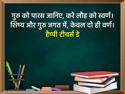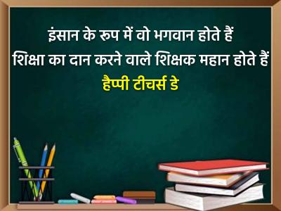 माता-पिता ने जन्म दिया पर शिक्षक ने जीने की कला सिखाई है ज्ञान चरित्र और संस्कार की हमने शिक्षा पाई है हैप्पी टीचर्स डे
