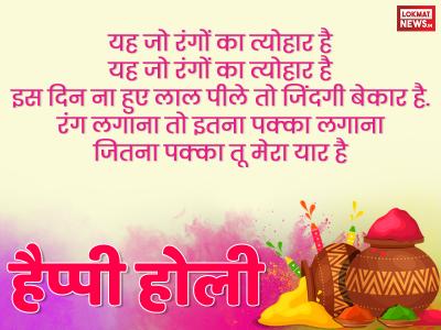 राधा के रंग और कन्हैया की पिचकारी, प्यार के रंग से रंग दो दुनिया सारी, ये रंग ना जाने कोई मजहब ना बोली, मुबारक हो आपको खुशियो रंग भरी होली