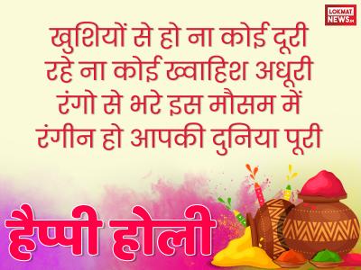 खुशियों से हो ना कोई दूरी, रहे ना कोई ख्वाहिश अधूरी, रंगो से भरे इस मौसम में, रंगीन हो आपकी दुनिया पूरी