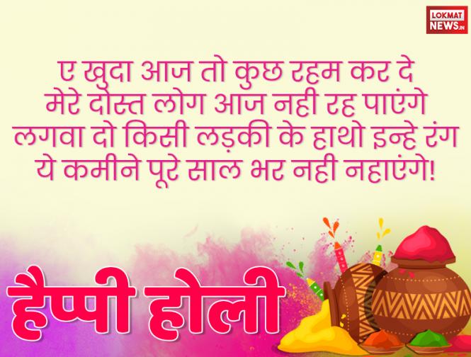 ए खुदा आज तो कुछ रहम कर दे, मेरे दोस्त लोग आज नही रह पाएंगे, लगवा दो किसी लड़की के हाथो इन्हे रंग, ये कमीने पूरे साल भर नही नहाएंगे!