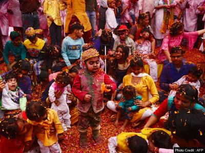बच्चे इस तस्वीर में होली का लुत्फ उठाते हुए नजर आ रहे हैं।