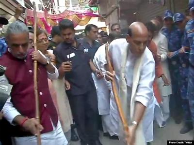 इसी बीच ग्रह मंत्री राजनाथ सिंह ने भी हाथ में झाड़ू उठाकर स्वच्छता अभियान को बढ़ावा देते हुए नजर आए...