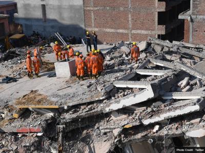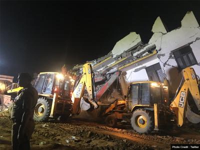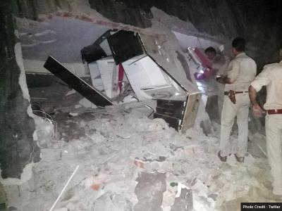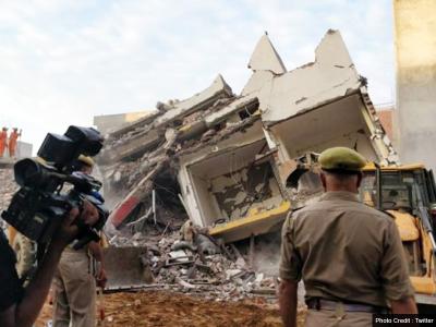 चार मंजिला इमारत में कई परिवार रहते थे, जबकि निर्माणाधीन छह मंजिला इमारत में कई मजदूर रहते थे। घटना शाहबेरी गांव की है।