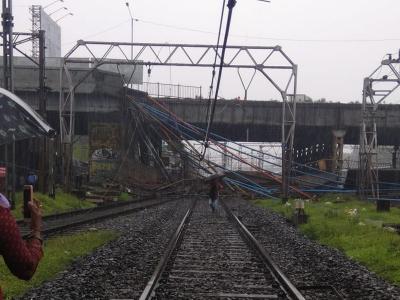 फिलहाल फुटओवर ब्रिज का एक हिस्सा गिरा है। माना जा रहा है कि भारी बारिश की वजह से फुटओवर ब्रिज को और नुकसान पहुंच सकता है।