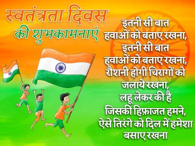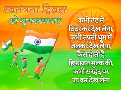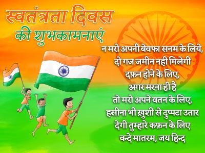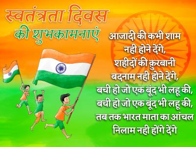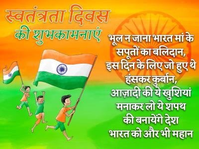 भूल न जाना भारत मां के सपूतों का बलिदान, इस दिन के लिए जो हुए थे हंसकर कुर्बान, आज़ादी की ये खुशियां मनाकर लो ये शपथ की बनायेंगे देश भारत को और भी महान