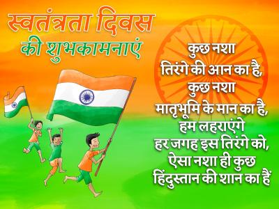 कुछ नशा तिरंगे की आन का है, कुछ नशा मातृभूमि के मान का है, हम लहराएंगे हर जगह इस तिरंगे को, ऐसा नशा ही कुछ हिंदुस्तान की शान का हैं