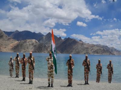 लद्दाख में पैंगोग झील के किनारे भारत-तिब्बत सीमा पुलिस (आईटीबीपी) के जवानों ने भी स्वतंत्रता दिवस मनाया।