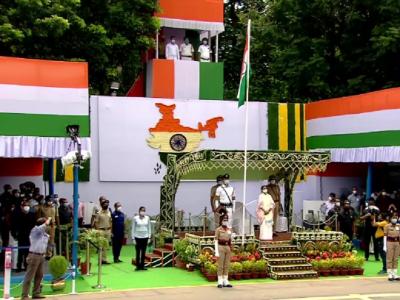 लद्दाख में लेफ्टिनेंट गवर्नर आरके ठाकुर ने झंडा फहराया। लेह के पोलोग्राउंड में आयोजित एक विशेष समारोह में उन्होंने तिरंगा फहराया।