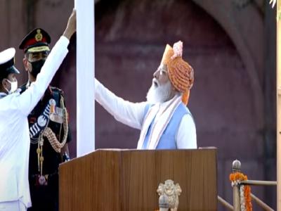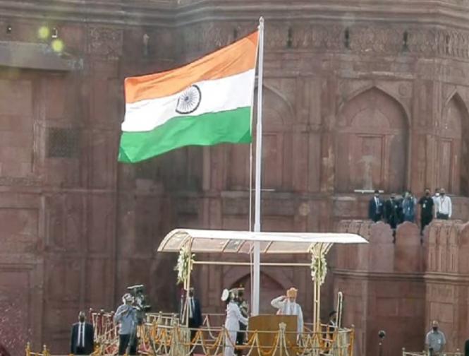 दिल्ली में रविवार सुबह प्रधानमंत्री नरेंद्र मोदी ने लाल किला पर तिरंगा झंडा फहराया और देश को संबोधित किया। इससे पहले वे महात्मा गांधी की समाधि पर भी गए और श्रद्धांजलि दी।