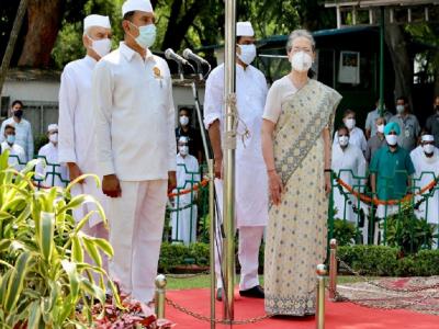 कांग्रेस की अंतरिम अध्यक्ष सोनिया गांधी ने भी पार्टी मुख्यालय पर तिरंगा झंडा फहराया। इस दौरान राहुल गांधी समेत कांग्रेस पार्टी के की सीनियर नेता भी मौजूद रहे।