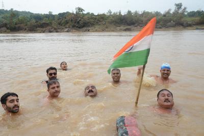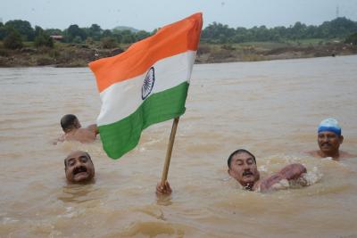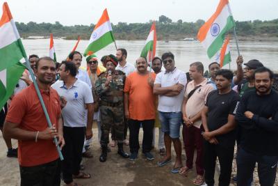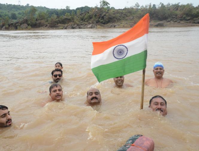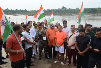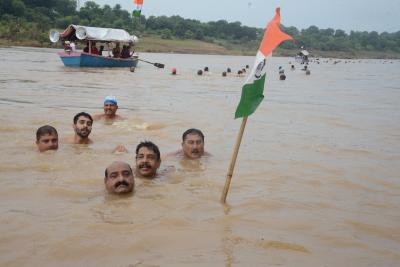 ऐसे एक दो नहीं बल्कि बहुत से लोग थे जो तिरंगा लेकर नर्मदा में उतरे थे। ये मौका सोमवार 14 अगस्त को पिछले 15 सालों से आयोजित होने वाली अखंड भारत संकल्प तिरंगा यात्रा का। ये यात्रा अशोक ग्रोवर व उनके साथियों द्वारा निकाली यह यात्रा जिलहरी घाट ग्वारीघाट से तिलवाराघाट तक करीब 10 किलोमीटर लंबी होती है।