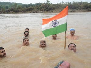 1 / 6नर्मदा की तेज लहरों में निकली तिरंगा यात्रा जबलपुर तेज लहरों को देखकर लोग जहां इसके किनारे पर खड़े होने का साहस नहीं दिखा पाते हैं, वहीं अखंड भारत संकल्प के साथ हाथों में तिरंगा लेकर वंदे मातरम् का नारा लगाते हुए तेज बहाव में कूद गए।2 / 6ऐसे एक दो नहीं बल्कि बहुत से लोग थे जो तिरंगा लेकर नर्मदा में उतरे थे। ये मौका सोमवार 14 अगस्त को पिछले 15 सालों से आयोजित होने वाली अखंड भारत संकल्प तिरंगा यात्रा का। ये यात्रा अशोक ग्रोवर व उनके साथियों द्वारा निकाली यह यात्रा जिलहरी घाट ग्वारीघाट से तिलवाराघाट तक करीब 10 किलोमीटर लंबी होती है।3 / 6इस बार तिरंगा यात्रा में तैराक जिनमें छोटे बच्चों से लेकर महिलाएं, युवा, बुजुर्ग सभी आयु वर्ग के लोग शामिल हुए।4 / 6यात्रा का उद्देश्य मां नर्मदा के सानिध्य में देश की सीमा पर खड़े सैनिकों का हौसला नारों के साथ बढ़ाना, देश की नदियों और पर्यावरण के संरक्षण के संदेश देना है।5 / 6साथ ही देश के युवाओं में राष्ट्रभक्ति, भारतीय संस्कृति और सीमाओं कीअखंडता का भाव जागृत करना है।6 / 6यात्रा पिछले 15 वर्षों से 14 अगस्त की सुबह आयोजित की जा रही है। कोरोना काल में सांकेतिक रूप से इसका आयोजन हुआ था। यात्रा में पूर्व निगमायुक्त वेदप्रकाश विधायक विनय सक्सेना महापौर जगत बहादुर सिंह अन्नू सहित समिति के पदाधिकारी शामिल हुए। (सभी फोटो- लोकमत)