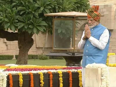 78वें स्वतंत्रता दिवस पर प्रधानमंत्री नरेंद्र मोदी ने राजघाट पर महात्मा गांधी को पुष्पांजलि अर्पित की।