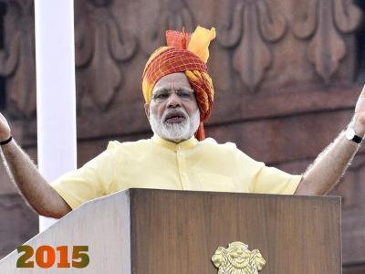 जिसकी किनारी लाल बंधेज की थी। मोदी ने प्रधानमंत्री के तौर पर 2015 में अपने पहले संबोधन के दौरान नांरगी और हरे रंग का जोधपुरी साफा बांधा था।