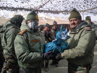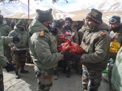 सेना के मुताबिक जनरल नरवणे ने अग्रिम इलाकों में तैनात जवानों से संवाद किया और इसी जोश और जज्बे के साथ काम करने के लिए प्रोत्साहित किया। सेना प्रमुख ने क्रिसमस करीब होने के मद्देनजर मिठाई और केक बांटे। उल्लेखनीय है कि करीब साढ़े तीन महीने पहले भारतीय सैनिक पूर्वी लद्दाख में पेगोंग झील के दक्षिण किनारे पर रणनीतिक रूप से अहम मुखपरी, रेचिन ला और मगर हिल इलाके के कई ऊंचाई वाले स्थानों पर काबिज हो गए थे।