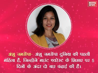 अंशु जमसेंपा- अंशु जमसेंपा दुनिया की पहली महिला है, जिन्होंने माउंट एवरेस्ट के शिखर पर 5 दिनों के अंदर दो बार चढ़ाई की हैं।
