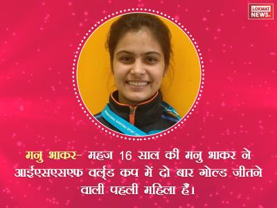 मनु भाकर- महज 16 साल की मनु भाकर ने आईएसएसएफ वर्ल्ड कप में दो बार गोल्ड जीतने वाली पहली महिला हैं।