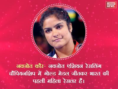 नवजोत कौर- नवजोत एशियन रेसलिंग चैंपियनशिप में गोल्ड मेडल जीतकर भारत की पहली महिला रेसलर हैं।