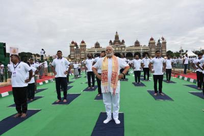 International Yoga Day 2022: योग दिवस पर मैसूर में पीएम मोदी ने 15 हजार लोगों के साथ किया योग, राजनाथ सिंह और सीएम योगी ने भी योग दिवस पर लोगों को दी बधाई