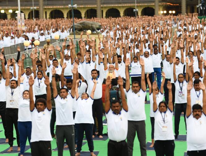 आज 8वां अंतरराष्ट्रीय योग दिवस, पीएम नरेंद्र मोदी ने इस मौके पर मैसूर में 15 हजार लोगों के साथ योग किया। (फोटो: ट्विटर)