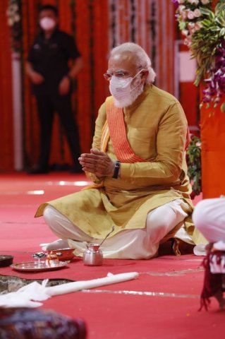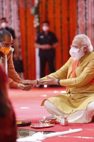 श्रीराम जन्मभूमि मंदिर के भूमिपूजन का यह अवसर, गौरव का है, आह्लाद का है, संतोष का है, सत्यजीत करुणा का है। हम भाग्यशाली हैं कि प्रभु श्रीराम ने हमें इस ऐतिहासिक घटना के साक्षी होने का सकल आशीष प्रदान किया। जय सिया राम! आज श्रीराम जन्मभूमि मंदिर के भूमिपूजन एवं कार्यारंभ के पावन कार्यक्रम में पधारे आदरणीय प्रधानमंत्री नरेंद्र मोदी जी को मुख्यमंत्री योगी आदित्यनाथ जी ने स्मृति-चिन्ह स्वरूप, प्रभु श्रीराम की प्रतिमा भेंट की।