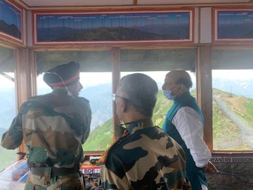 रक्षा मंत्री राजनाथ सिंह ने जम्मू कश्मीर के केरन सेक्टर में नियंत्रण रेखा (एलओसी) के निकट एक अहम अग्रिम चौकी का शनिवार को दौरा किया। रक्षा मंत्री के साथ प्रमुख रक्षा अध्यक्ष जनरल बिपिन रावत और सेना प्रमुख जनरल एम एम नरवणे नॉर्थ हिल चौकी पहुंचे जहां वरिष्ठ अधिकारियों ने सीमा पर हालात के संबंध में उन्हें जानकारी दी।